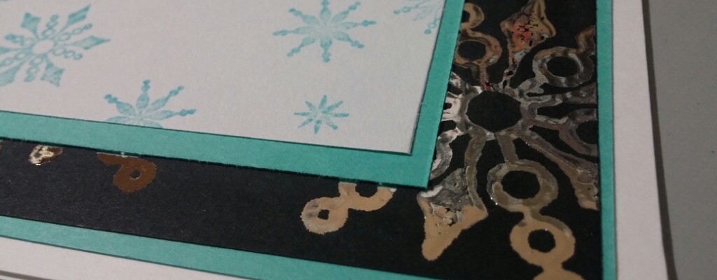 For my second card I used the snowflakes from Cas-ual Fridays’ set Bring on the Snowflakes and heat embossed the snowflakes on black card stock in clear. I ran his through my Minc with silver foil. I layered this on aqua blue card stock and then on a white A2 card base. The sentiment is from Cas-ual Fridays’ stamp set Snowy Sayings which I stamped in Memento Tuxedo Black ink and the snowflakes from the same set from Color Box Aqua pigment ink on white card stock and then layered on aqua blue card stock. Another very simple card.