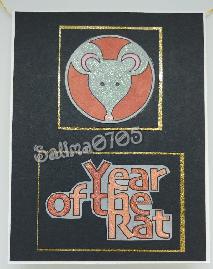 After being MIA, I have returned. According to Chinese philosophy, the rat is considered to be signs of wealth and prosperity. The year 2020 is The Year of the Rat according to the Chinese. With the help of digi files from Janet van lone trieschman of V-studios, I was able to create this card.